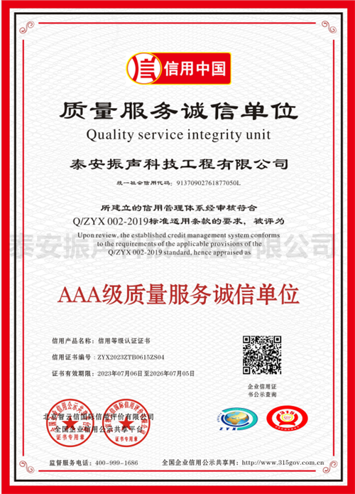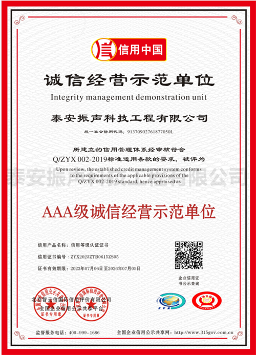 AAA級(jí)誠(chéng)信經(jīng)營(yíng)示范單位