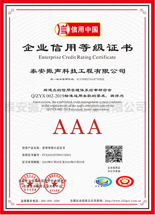 信用等級(jí)AAA認(rèn)證證書