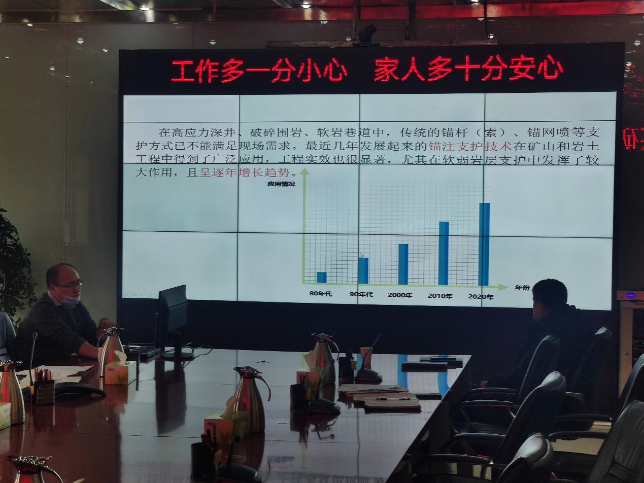 2021年1月11日,泰安振聲科技工程有限公司受邀到神東布爾臺(tái)煤礦進(jìn)行錨注加固相關(guān)培訓(xùn)和匯報(bào),布爾臺(tái)煤礦總工程師及生產(chǎn)辦相關(guān)工程技術(shù)人員參加了培訓(xùn),公司副總經(jīng)理牛金華進(jìn)行了題為《錨注加固強(qiáng)護(hù)表支護(hù)技術(shù)》的授課,對(duì)錨注加固控制圍巖支護(hù)機(jī)理、中空注漿錨索和注漿加固料原理及性能、錨注加固監(jiān)測(cè)評(píng)價(jià)效果檢驗(yàn)等進(jìn)行了講解。并與礦方工程技術(shù)人員一同對(duì)錨注加固技術(shù)進(jìn)行了研討,對(duì)礦方工程技術(shù)人員提出的相關(guān)問(wèn)題進(jìn)行了認(rèn)真答疑,礦方領(lǐng)導(dǎo)對(duì)42108工作面錨注加固試驗(yàn)段支護(hù)效果給予了充分肯定。